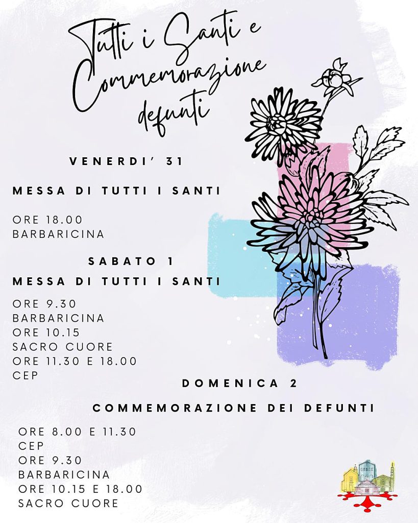 ORARIO MESSE DAL 31/10 AL 2/11 di redazione24 Ottobre 202531 Ottobre 2025In Cammino - Avvisi - Notizie, Orario S. Messe Versione PDF
