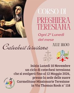 Inizia Lunedi 10 Novembre un ciclo di catechesi teresiana che si svolgerà ogni 2° Lunedi del mese, fino al 12 …