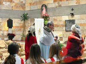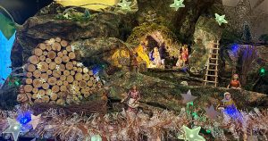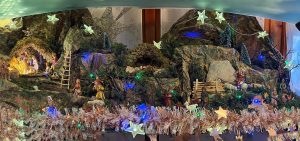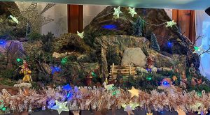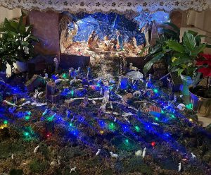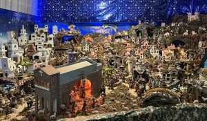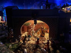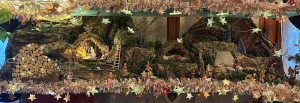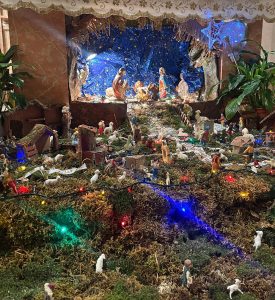 Presepe molto grande, decorato nei minimi dettagli, portato avanti da anni e con un grande lavoro nel tempo. Tutto fatto a mano (tranne le statuine) con materiali di scarto per non sprecare. La chiesa è quella del Sacro Cuore ricostruita nei minimi dettagli. Un grande impianto elettromeccanico permette l’alternanza giorno-notte e il movimento di personaggi e oggetti.