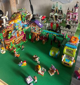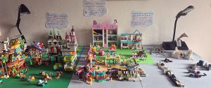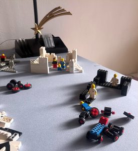 Presepe fatto con Lego, rappresenta il contrasto fra un mondo ricco e felice (a sinistra) e uno dilaniato dalla guerra come sta accadendo in molte, troppe parti del mondo (a destra).