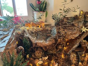 Presepe semplice ma con la particolarità di un ambiente che richiama i Monti Pisani, allo scopo di ricreare un paesaggio simile a quello che vediamo dalla nostra città.
