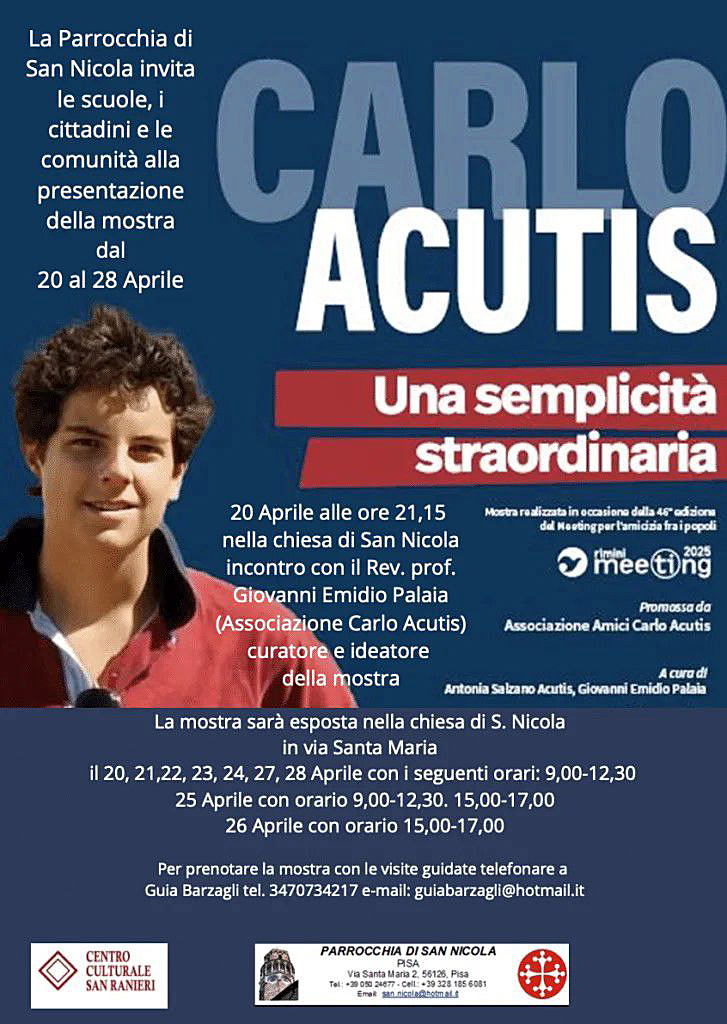 • UNA MOSTRA SU SAN CARLO ACUTIS A PISA DAL 20 AL 28 APRILE 2026